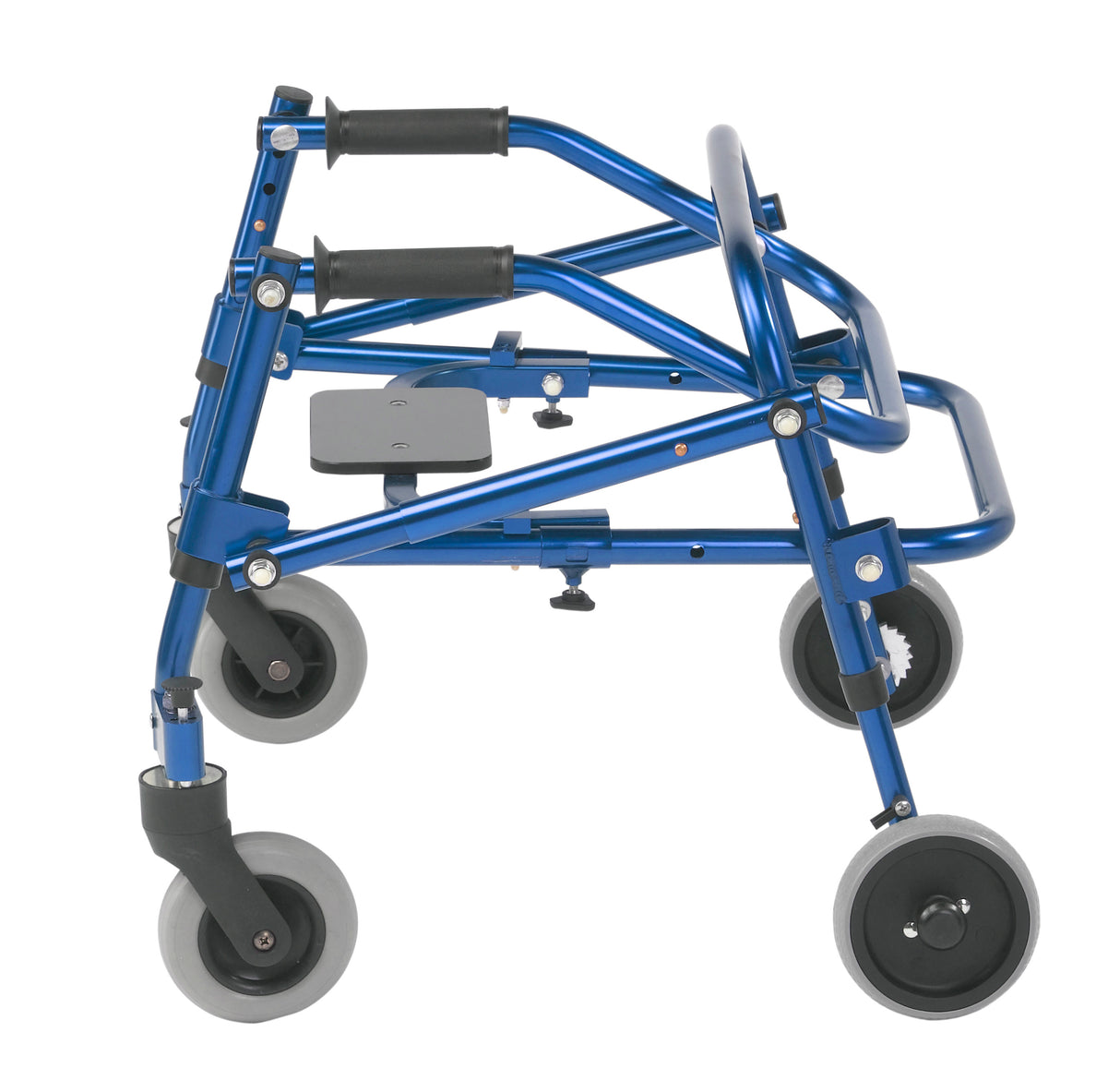 The Nimbo Posterior Walker provides maximum mobility assistance for both adults and children. Choose from five different height settings to experience the perfect customized fit. The Nimbo also features an improved handgrip design for increased comfort, and folds compactly for easy transport and storage. This Nimbo version includes a foldable seat that easily flips down for convenient rest stops, and flips back up to allow continued walking. Available in three new colors.