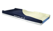 The Geo-Mattress with Wings pressure relief mattress features a raised perimeter, eight inches high, to prevent injury by filling in the space between the bottom of the side rail and the mattress surface.