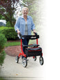 The Nitro Euro Style Rollator Walker has unrivalled folding capabilities: it easily collapses to an ultra-compact size with one hand by pulling the seat grip up and bringing the ergonomic, height-adjustable handles together so they almost touch. To further offer customized comfort, the removable back is also height-adjustable, and the luxury seat is made of easy-to-clean nylon. Enjoy the complimentary removable zippered storage bag for secure convenience of all your personal belongings whenever travelling with your new Drive Medical Nitro Euro Style Rollator Walker.