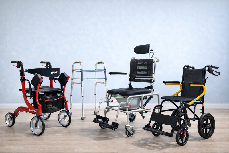 Choose from a broad collection of Rollators, Walkers and Wheelchairs.