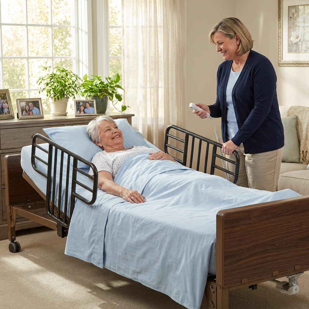 "This bed exceeded my expectations. The easy-to-clean surface is a major plus, especially when managing spills or accidents. The electric controls for adjusting the height, head, and foot are seamless, and it makes caring for my mother at home so much easier."