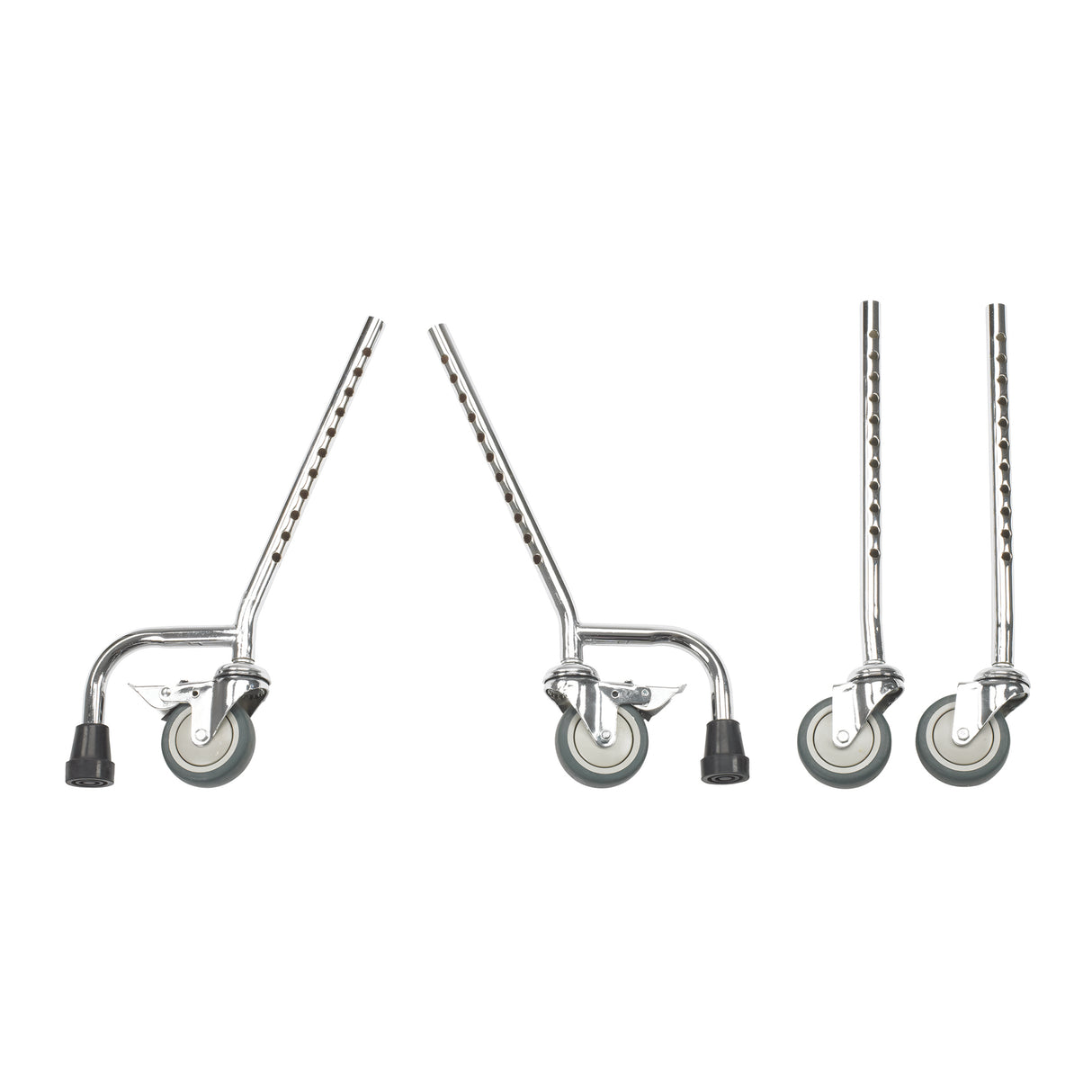Mobility legs quickly and easily convert a First Class seating system into a convenient mobile chair. The four swiveling casters allow easy movement of the chair with the seated child. Wheels lock securely in place for security.