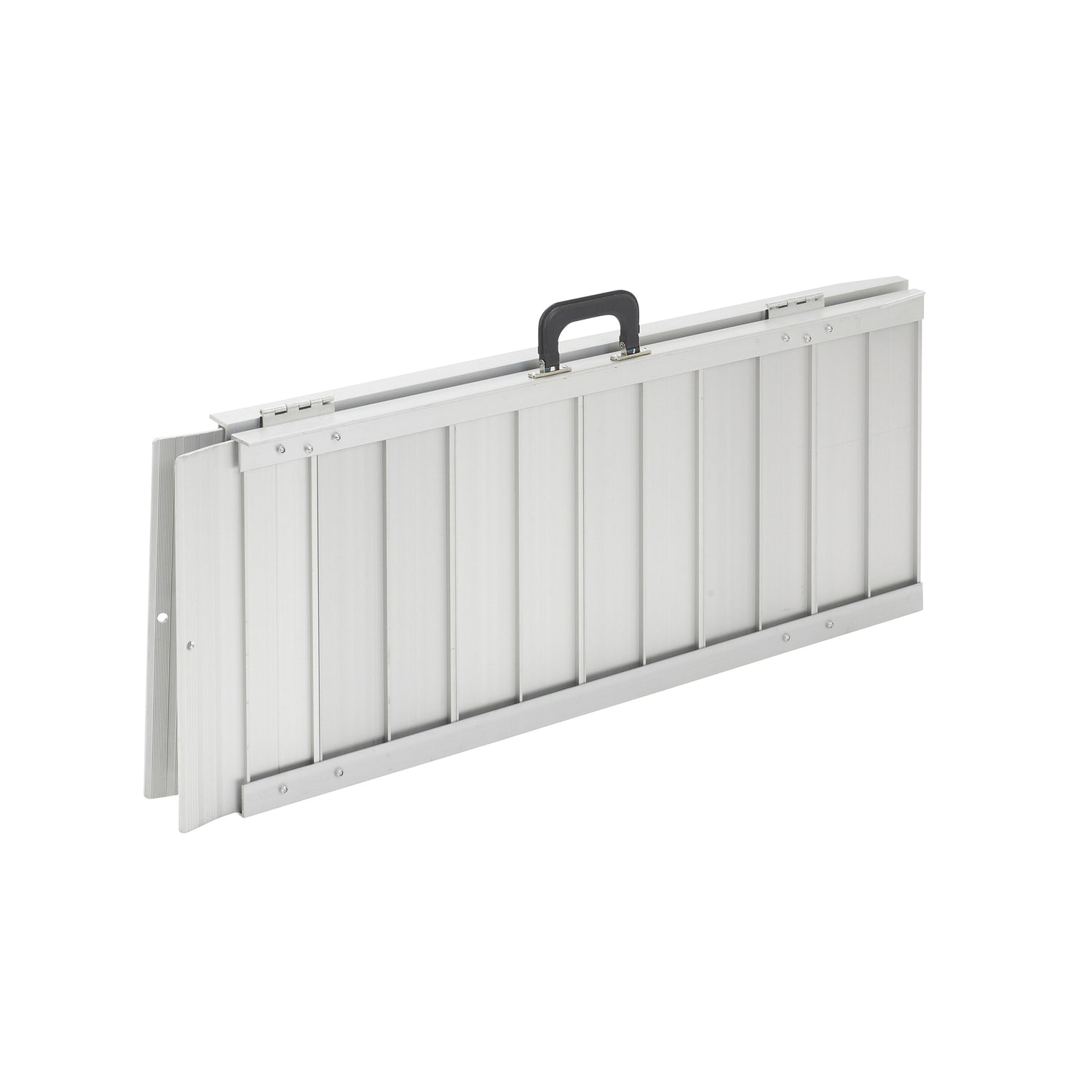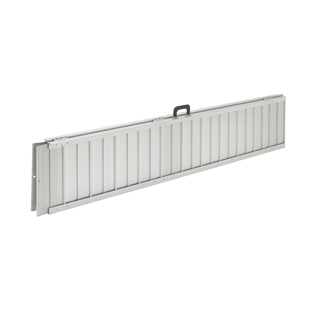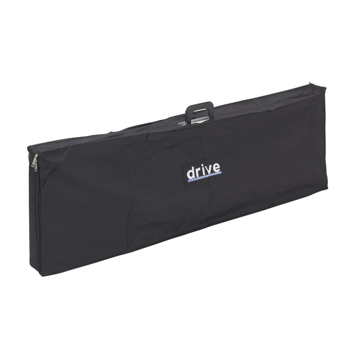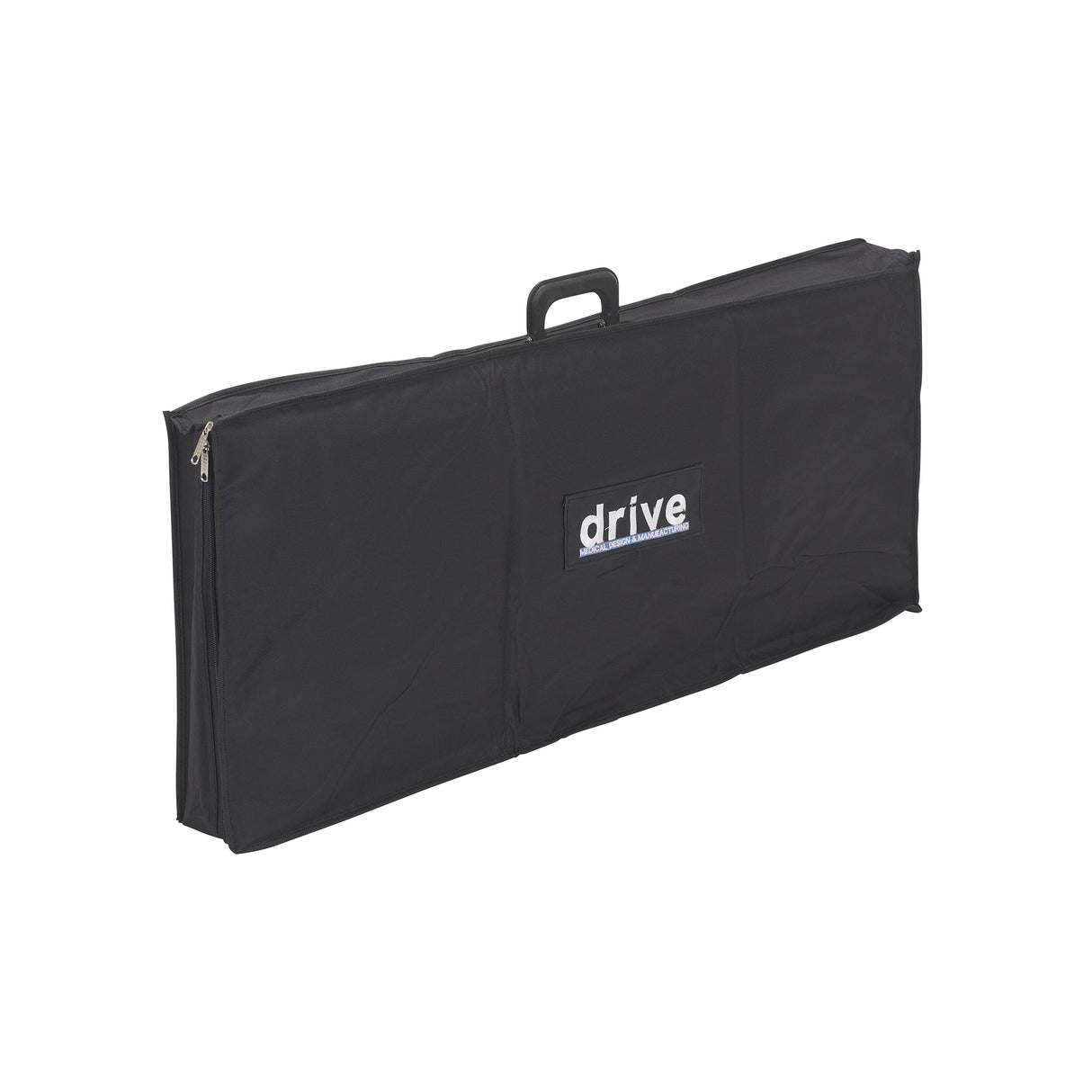 The Wheelchair and Scooter Ramp by Drive Medical is designed for transitioning a wheelchair or scooter from one surface height to another. The durable, folding, lightweight construction allows for the ramp to be easily transported in its carry bag. This ramp was especially designed with perforated slots to keep water from collecting on the ramp and ensuring users safety while in use. The ramp has a total weight capacity of 600 lbs.