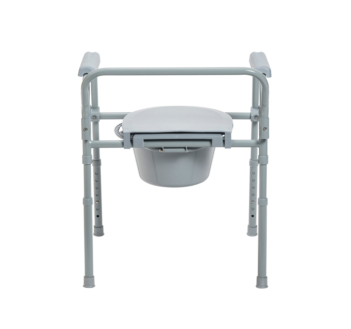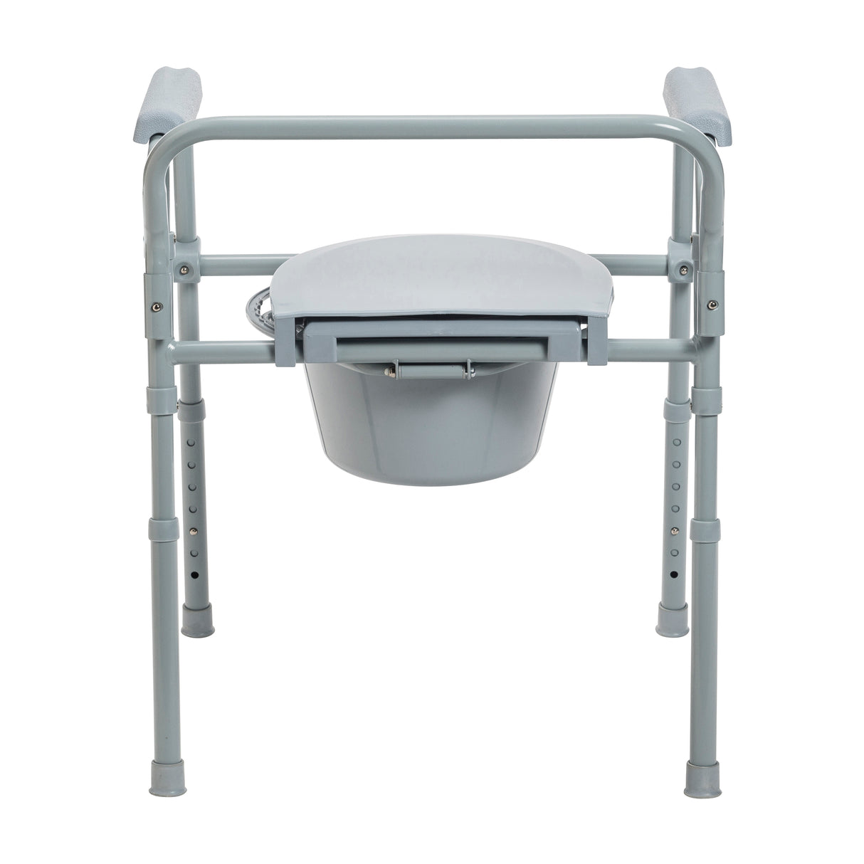 La cómoda de cama plegable de acero Drive Medical se abre y se pliega fácilmente, y se pliega hasta quedar plana para un almacenamiento y transporte cómodos. Los botones a presión fáciles de usar permiten que esta cómoda se abra y se pliegue en segundos. El asiento y la tapa de plástico duraderos con cierre a presión y la construcción soldada de acero con revestimiento en polvo gris aumentan la resistencia y la durabilidad. Viene con brazos de plástico para mayor comodidad y seguridad. Viene completa con un balde para inodoro de 7,5 qt con asa de transporte, tapa y protector contra salpicaduras. Con el respaldo de una garantía limitada de por vida de Drive Medical, una marca líder en productos de seguridad para el baño, dispositivos de movilidad y otros productos médicos durante más de 20 años, puede comprar con confianza.