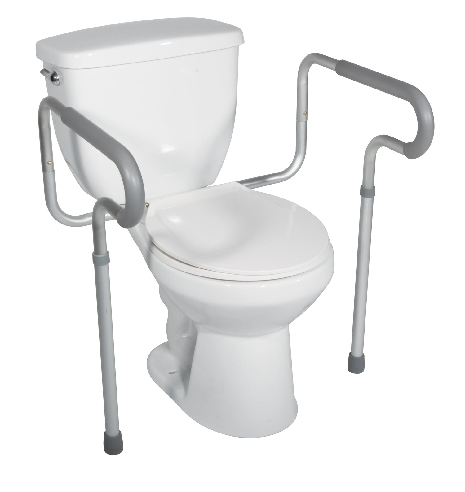 This sturdy and lightweight toilet safety frame by Drive Medical provides your customer with Waterfall armrests which provide additional comfort and support. Powder coated aluminum brackets which easily attaches the frame to toilet. The Arms are height and width adjustable conform to you.