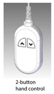 The hand control unit can be used to operate the fixed ceiling lift. Use the UP and DOWN buttons to raise and lower the lift. For a device equipped with lateral motorization, use the LEFT and RIGHT buttons on the 4-button hand control to move the lift along the track.