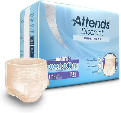 Attends underwear, large - waist size 44" - 58" - 4 bags of 18