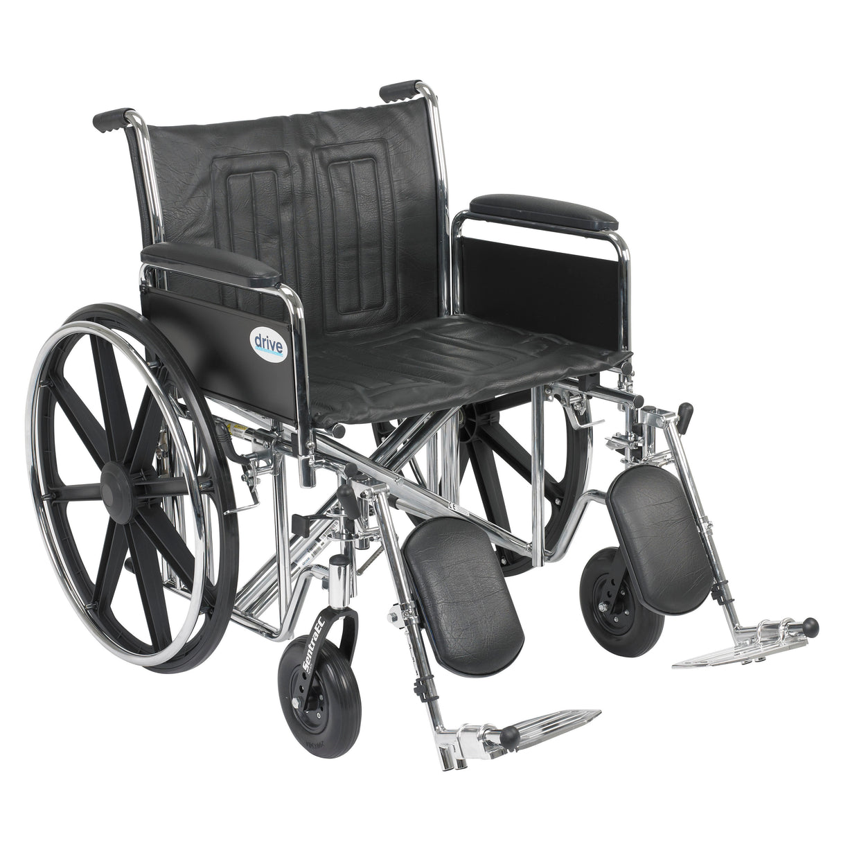Le fauteuil roulant robuste Sentra EC de Drive Medical avec accoudoirs amovibles et repose-jambes relevables est doté d'une double barre transversale qui renforce le cadre en acier au carbone, ce qui permet à ce fauteuil de supporter un poids de 450 lb. Le cadre en acier au carbone est doté d'une finition chromée attrayante, résistante aux éclats, facile à entretenir, à triple revêtement et d'un revêtement en vinyle à double relief, ce qui rend ce fauteuil roulant bariatrique durable, léger, attrayant et facile à nettoyer. L'essieu double standard permet une transition facile du siège au niveau semi-allongé. Livré en standard avec des accoudoirs amovibles, des repose-pieds relevables, 8 roulettes avant, des pneus en uréthane, des repose-pieds en aluminium, des jantes chromées et des verrous de roue à pousser pour verrouiller, garantissant la sécurité de l'utilisateur. Garantie de 3 ans.