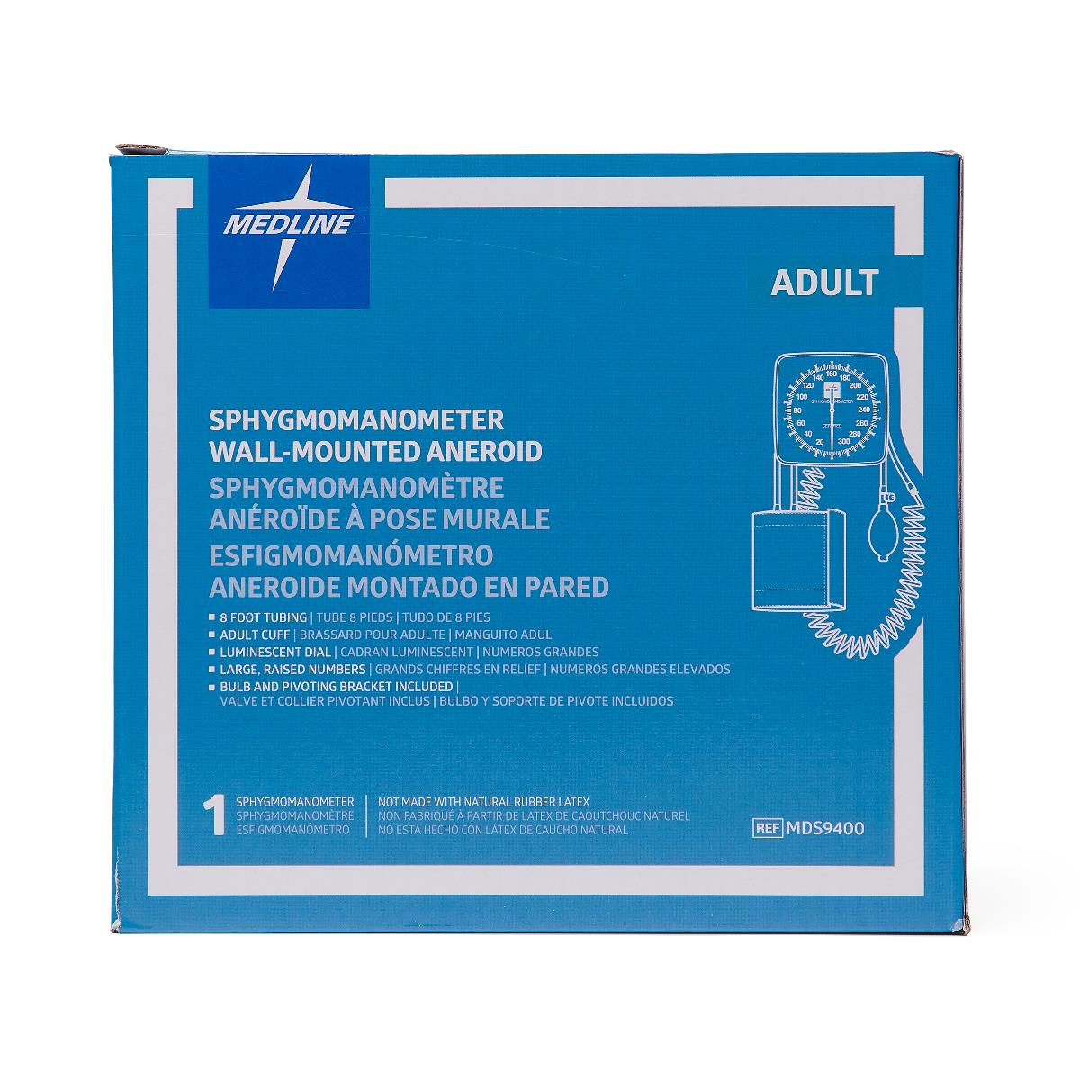 Blood Pressure Unit Aneroid Dial Wall Mount With Adult Cuff With Latex-free Tubing Each