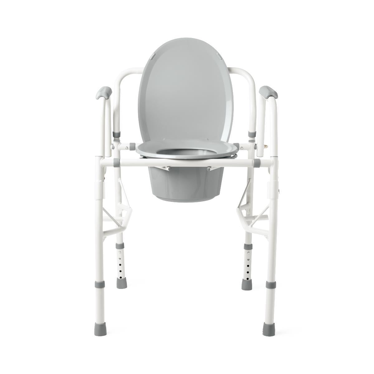 - Arms drop down out of the way for easy lateral transfers on and off the commode, even for patients using wheelchairs