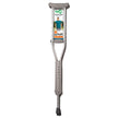 Crutches by Hugo are lighter than wood and are manufactured from lightweight anodized aluminum, supporting up to 300 lbs. These tall adult size, adjustable crutches can accommodate a user height of 5' 10" to 6' 6". Hugo Crutches feature dual push-button adjustments, while approximate patient height settings are labeled on the center tube to within 1" increments. Contoured crutch tips that feature a curved stair deflector at their tip, provide exceptional traction while a built in metal ring protects against premature wear. Hugo Crutches feature thick cushioned underarm pads, designed with internal ribbing and reinforced ends that reduce pressure and underarm fatigue. Hugo's Lightweight Adjustable Aluminum Crutches have washable hand grips, made from a natural sponge cushioning that absorb impact shock and are perspiration resistant.